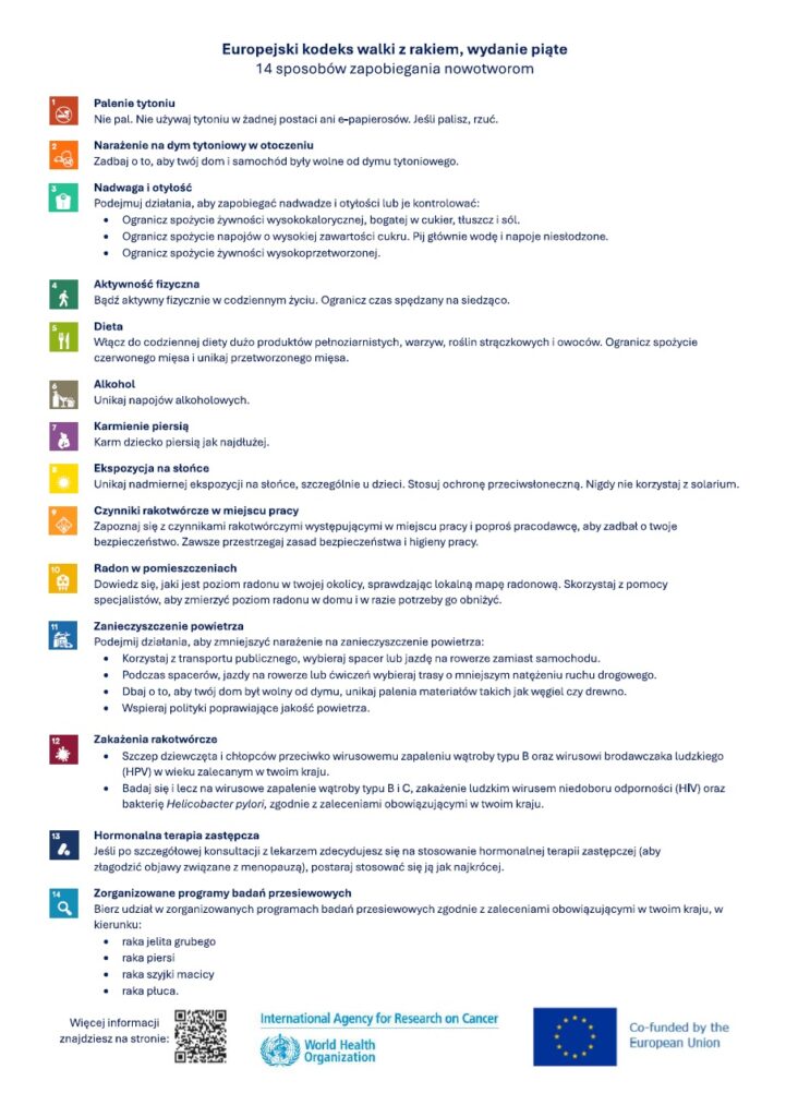 Więcej informacji na stronie: European Code Against Cancer | 14 ways to prevent cancer